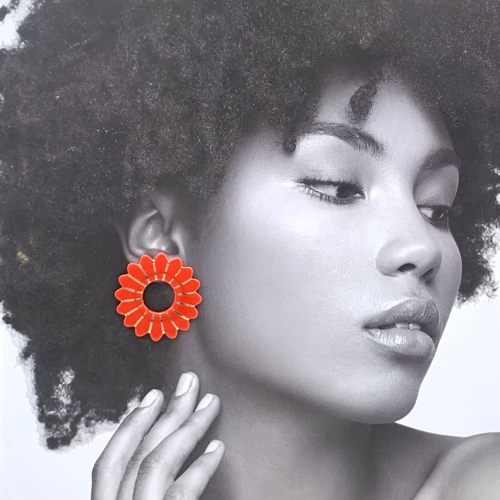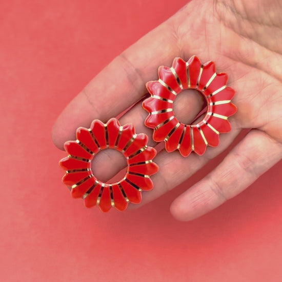 Boucles d'oreilles Marguerite, rouge orangé et or