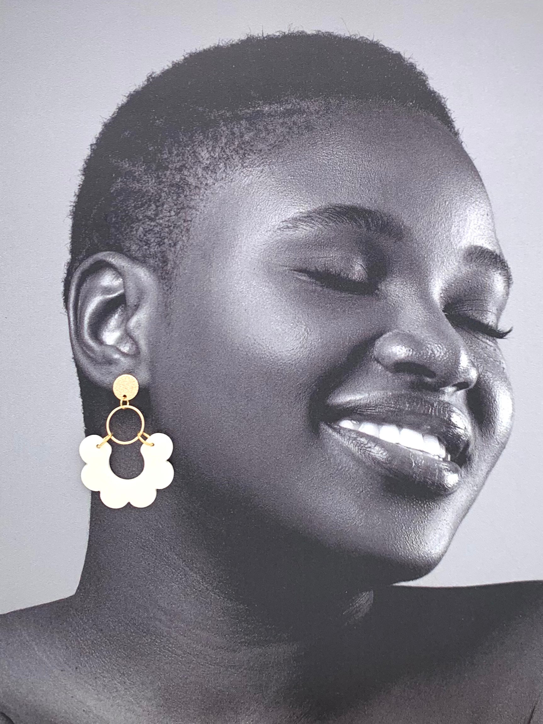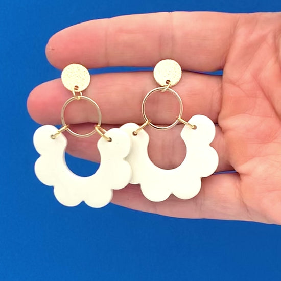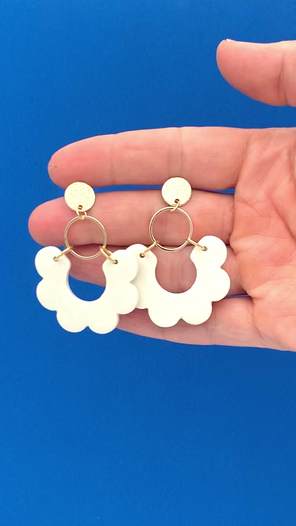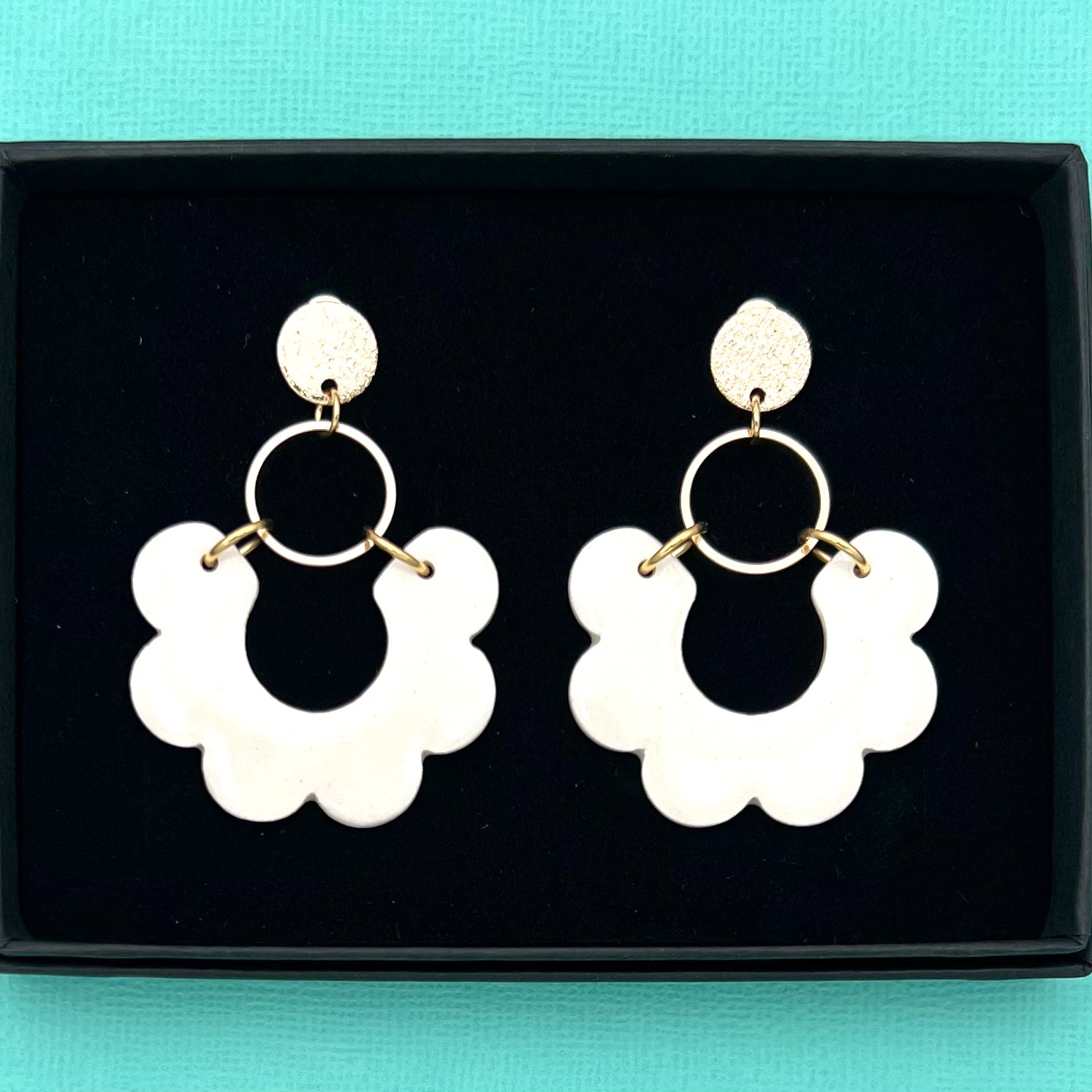 Boucles d'oreilles pendantes légères en céramique. Tige en acier inoxydable hypoallergénique garanti sans nickel, sans plomb, sans cadmium.